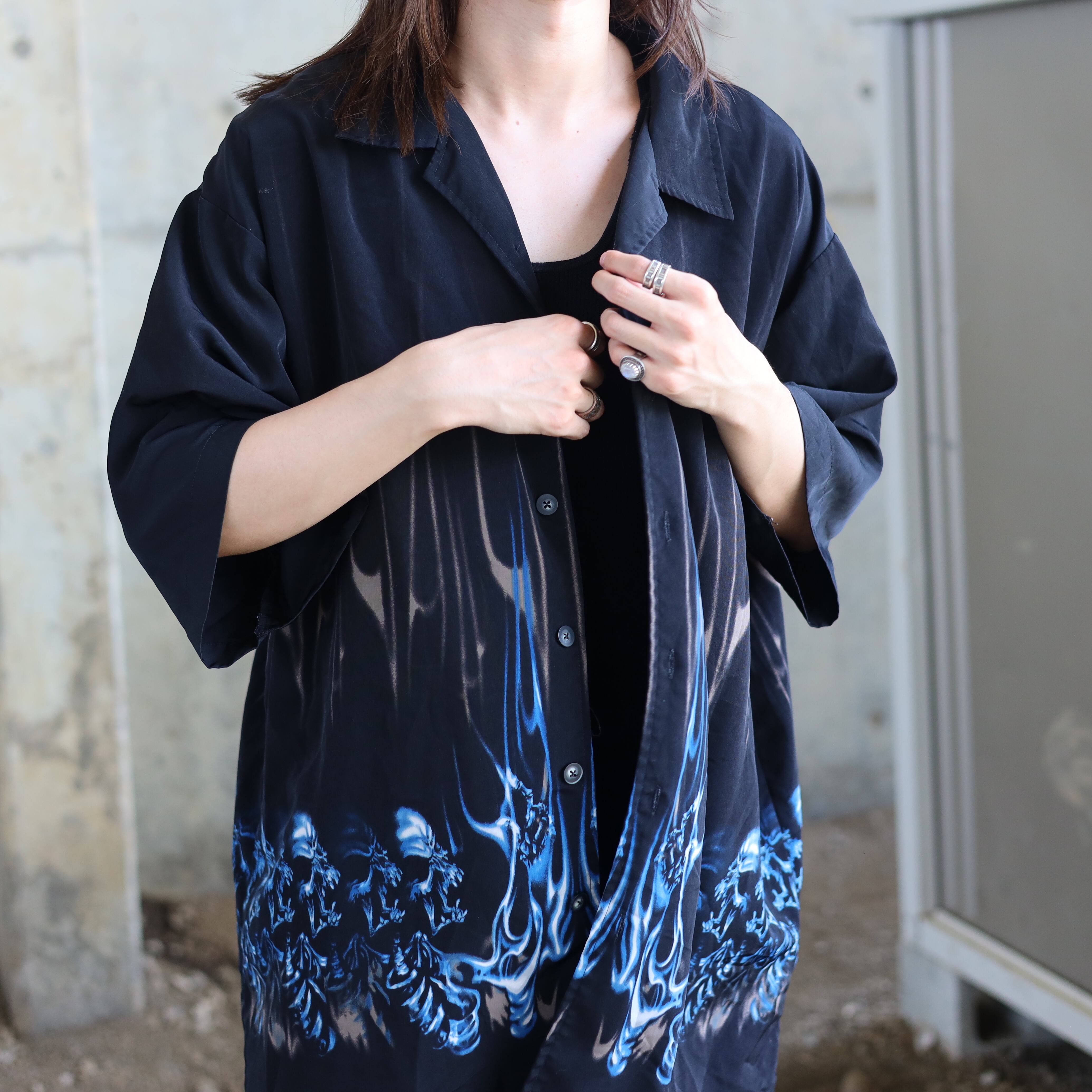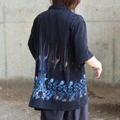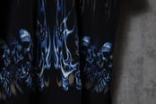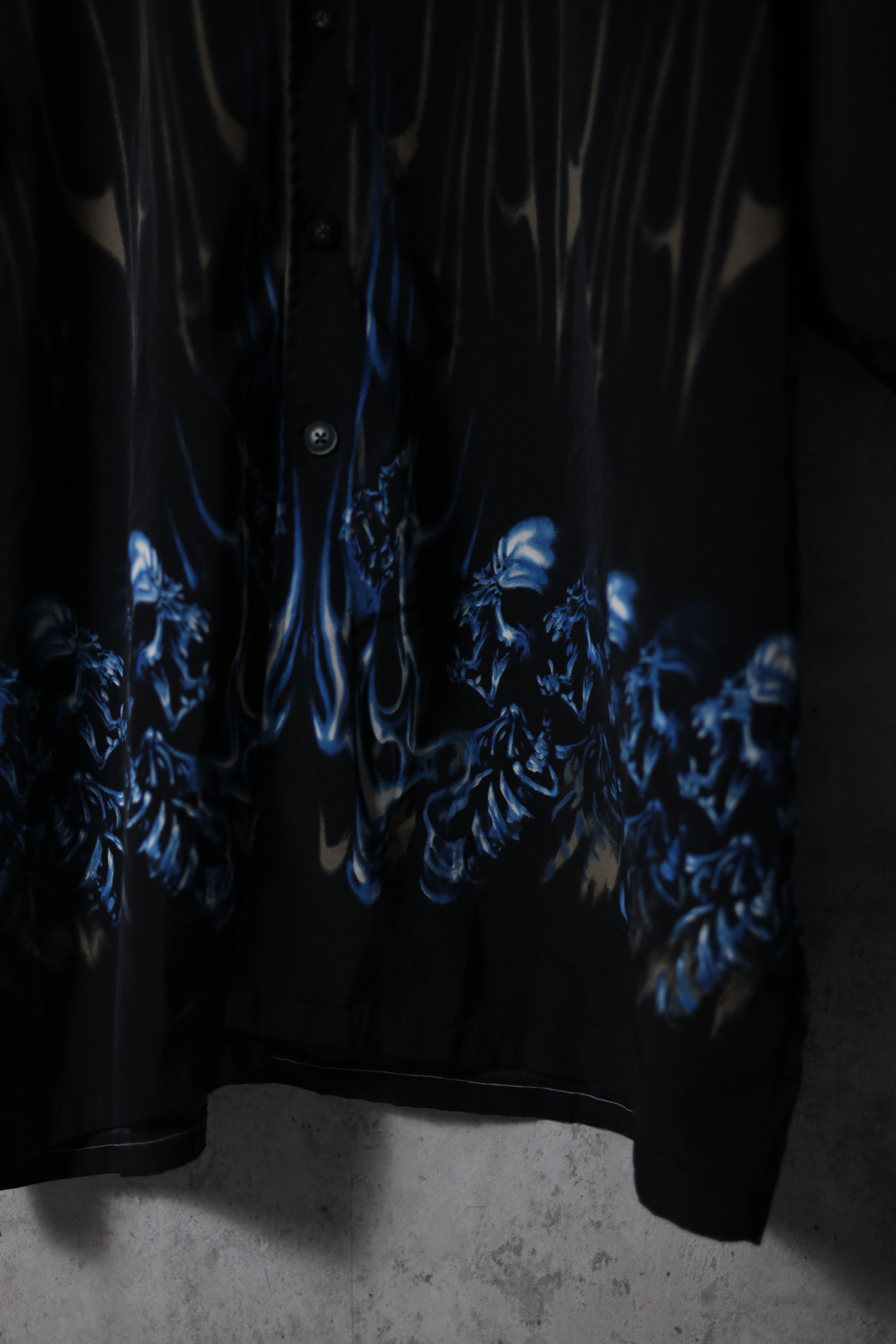瑠璃色のスカルがデザインされたインパクトのあるショートスリーブシャツ