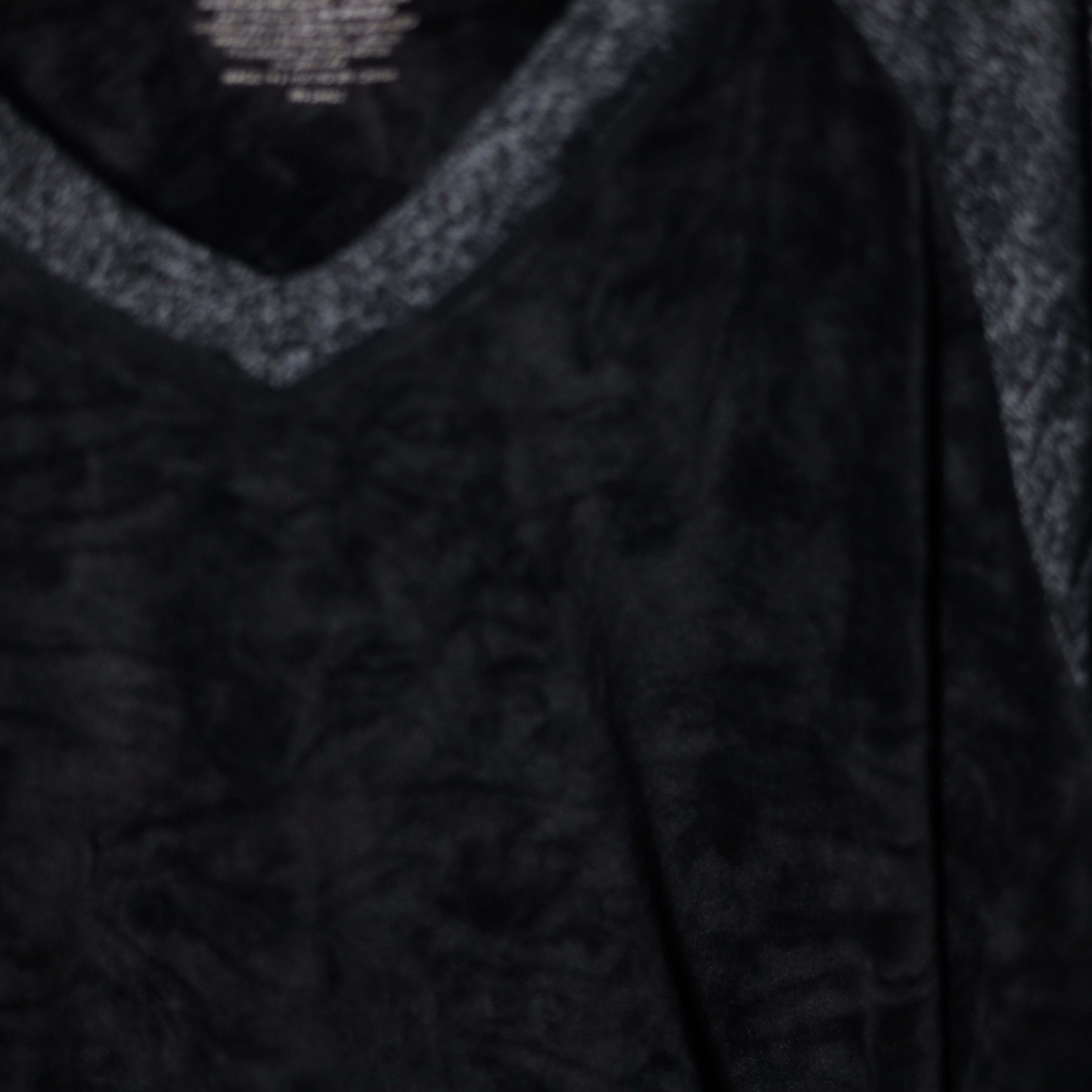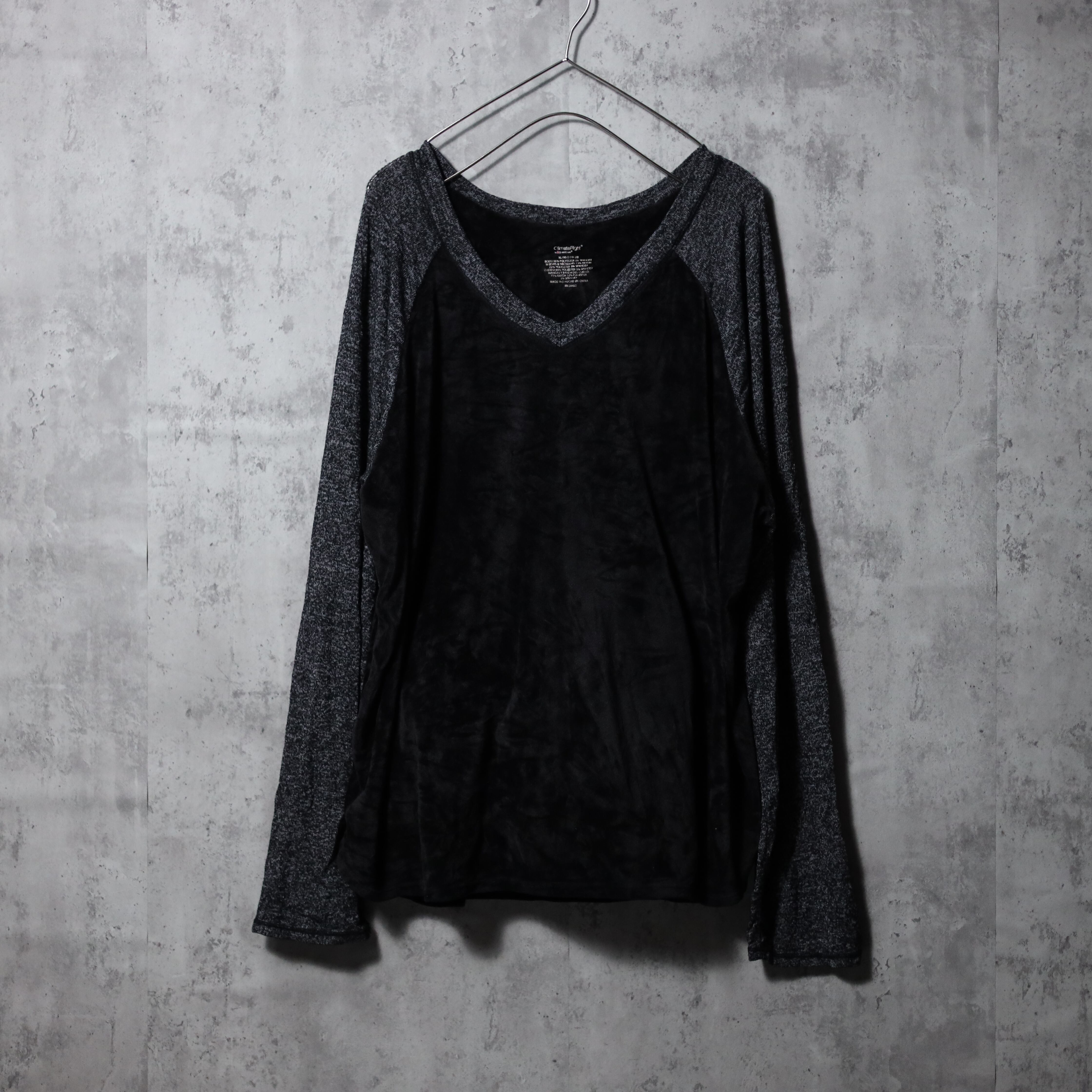 ボディがベロア、袖がレーヨンで構成されたロンT。