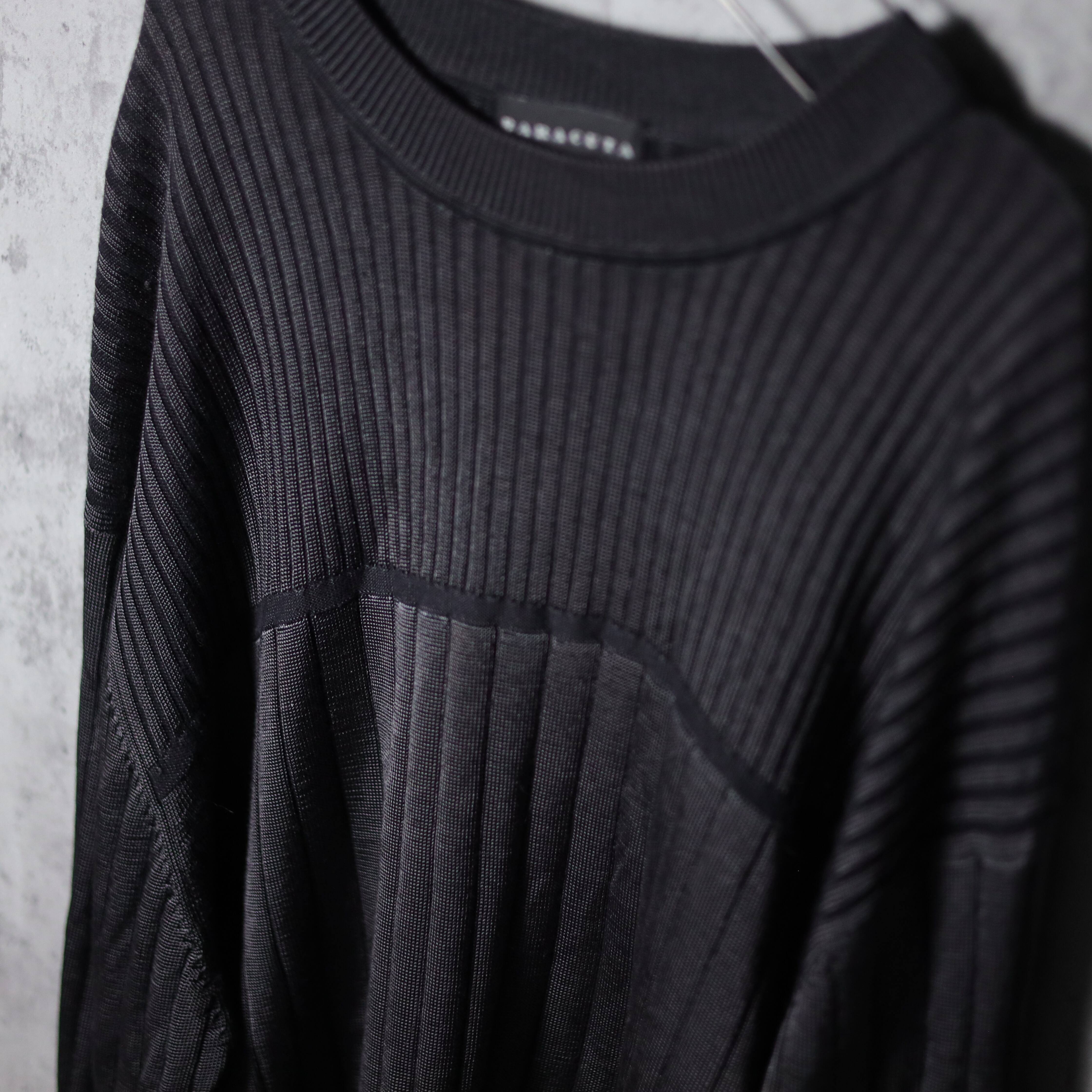 光沢感のある切り替え生地と着用した時の圧倒的なドレープ感は、なかなか出ない一級品。