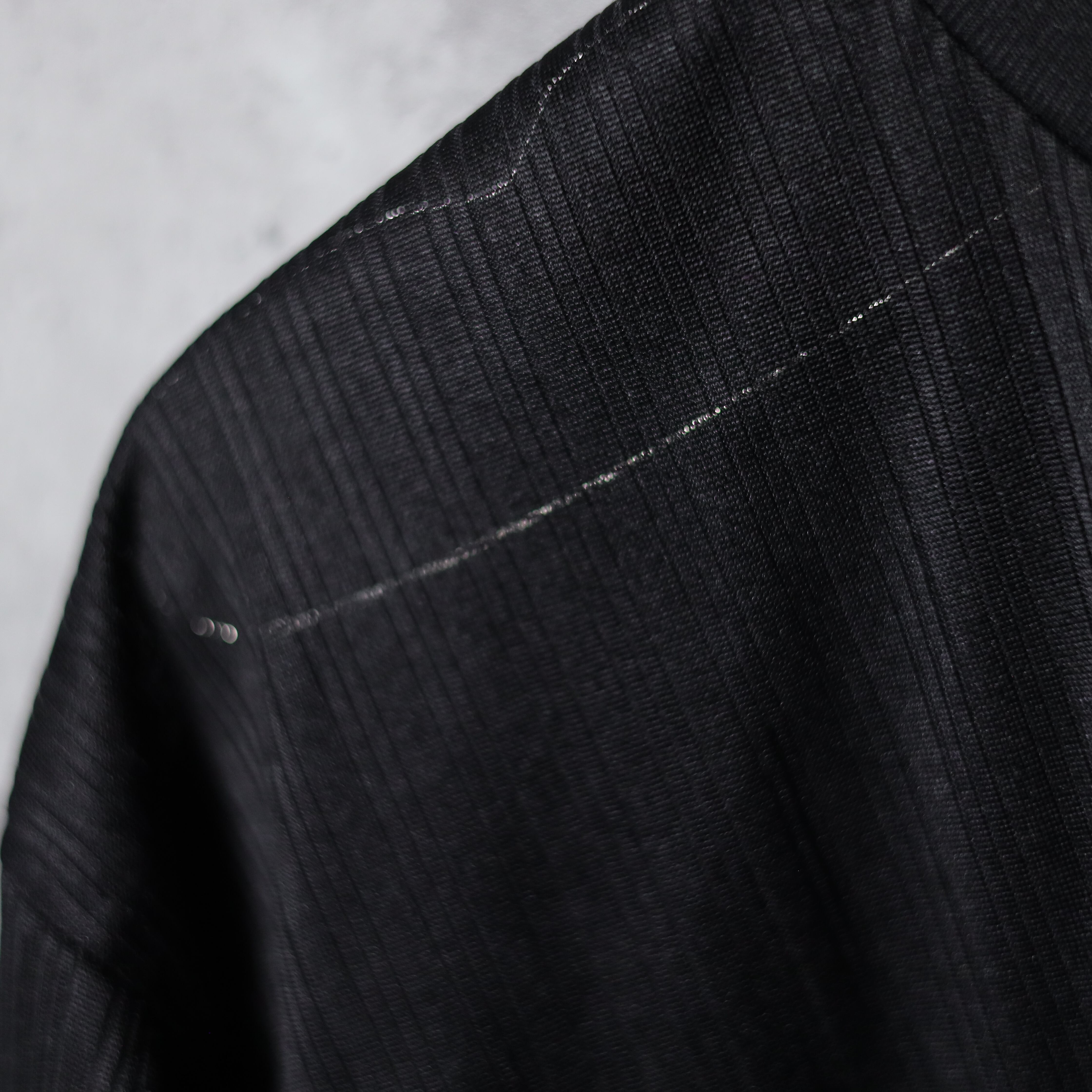 首周りのリブがかなり詰まったデザインながら、サイズ感はピッタリとしていないのが素晴らしいディティール。
