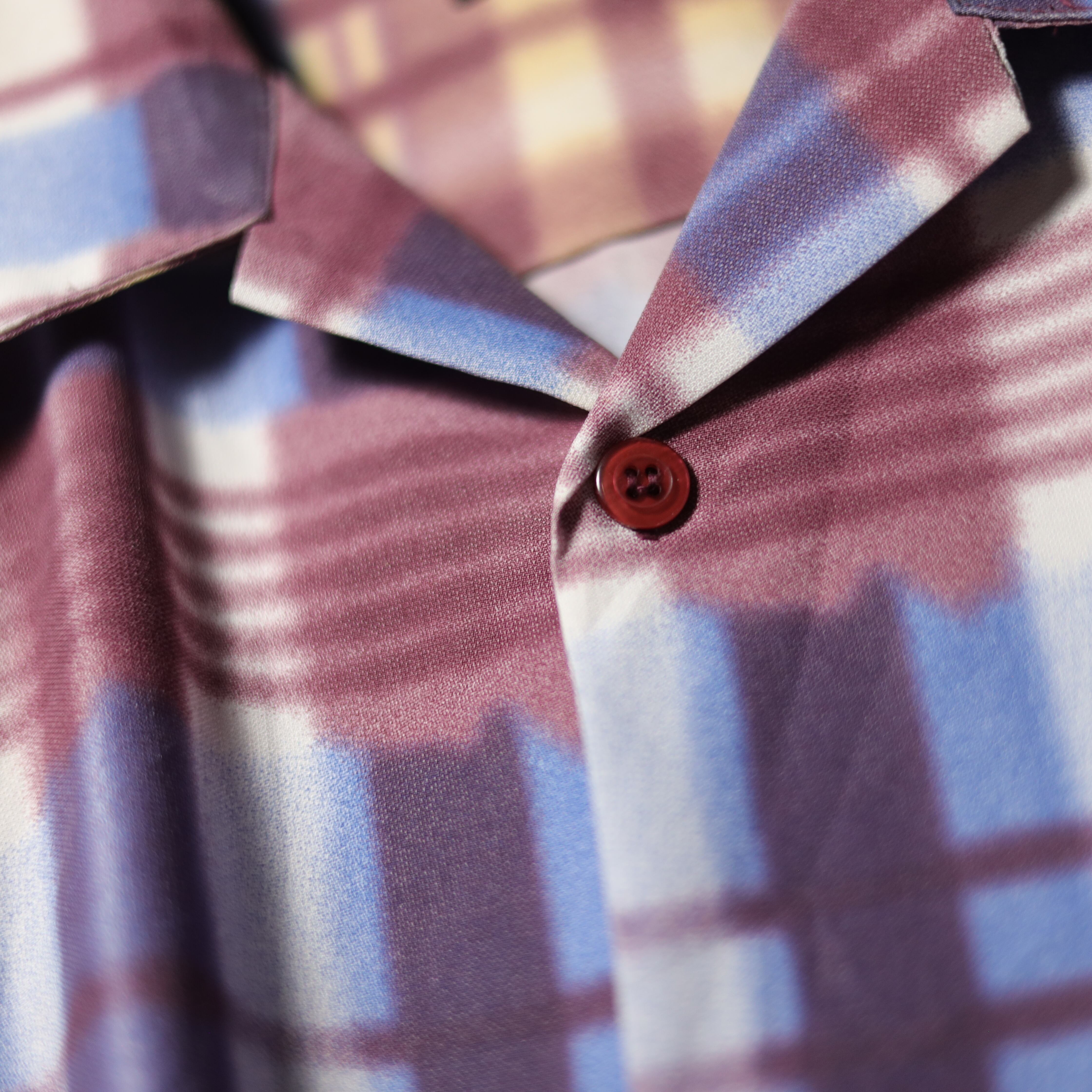 淡い色使いが印象的なシャツは、ポリエステル100%でさらりとした着心地ながら、なぜかしっかりとした生地感も抜群によいです。